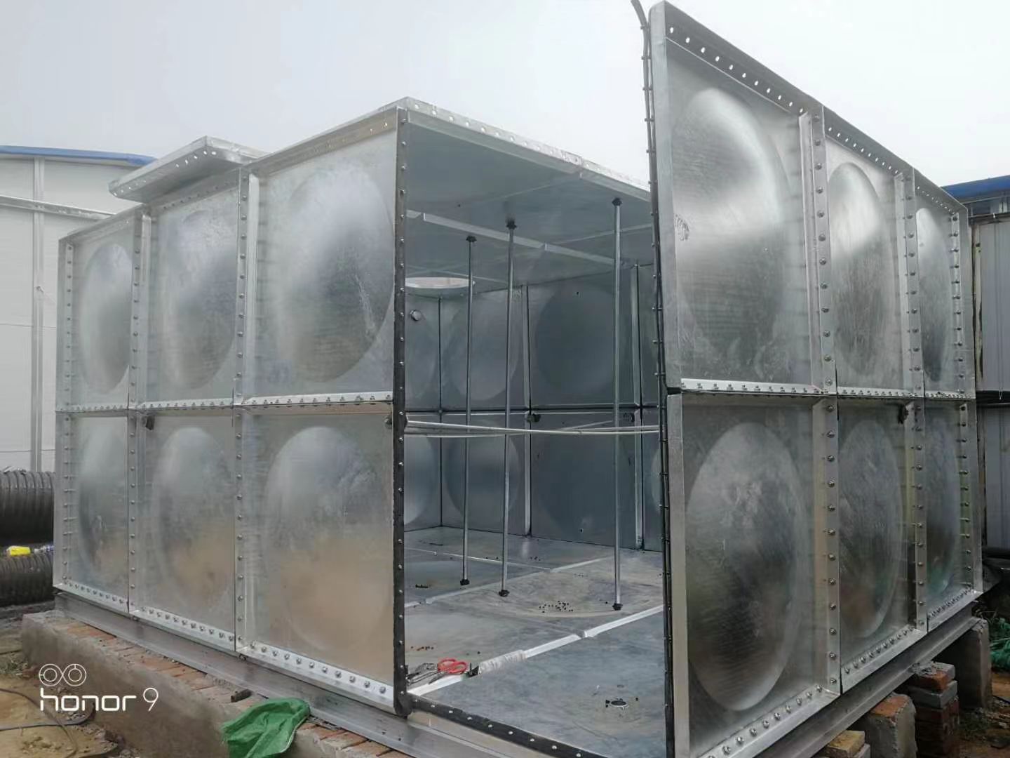 一、產品特點: 選材:騰翔選用Q235邯鋼鋼板,使鍍鋅水箱的使用時間更久,并能較好防止水質的二次污染。 結構:鍍鋅沖壓板及箱里面分布均勻的拉筋使箱體承壓均勻合理。 施工方便快捷:標準沖壓板塊1000*1000、1000*500、500*500mm隨意裝配現場組裝焊接,不需吊裝設備。 箱體輕盈美觀:沃迪沖壓工藝,使鍍鋅水箱箱體較大限度的承壓需要,又降低了材料厚度,滿足了箱體的美觀實用要求。